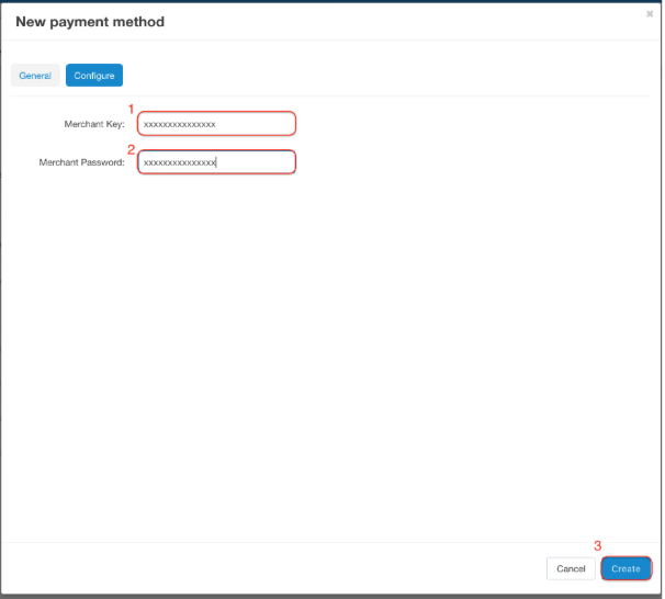 Enter Credentials Enter your Merchant Key and Password provided by EdfaPay and click Create.