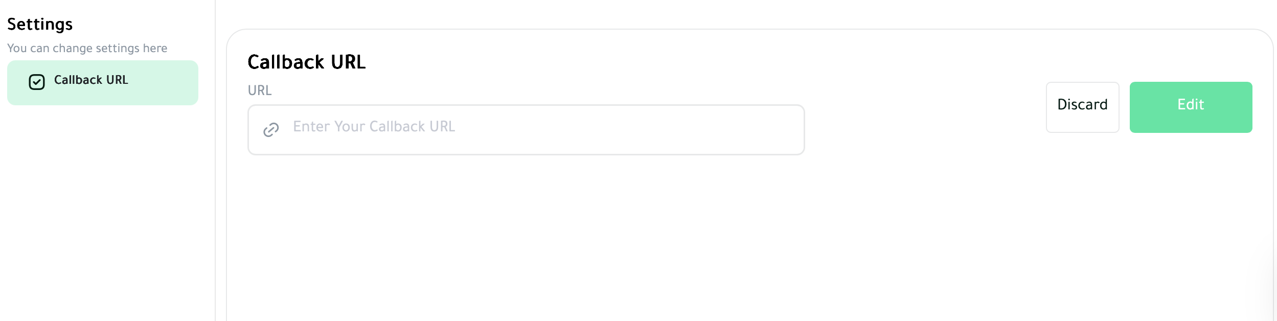 - Navigate: Go to Settings, then select Callback URL.